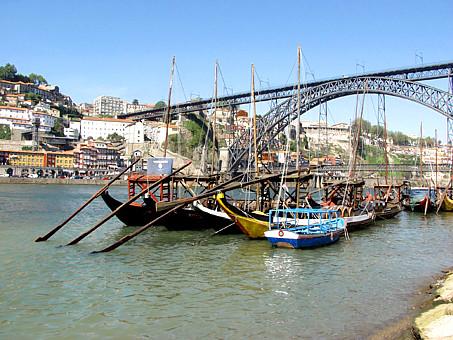 Barcos Rabelo tendo como fundo a ponte D. Luiz I