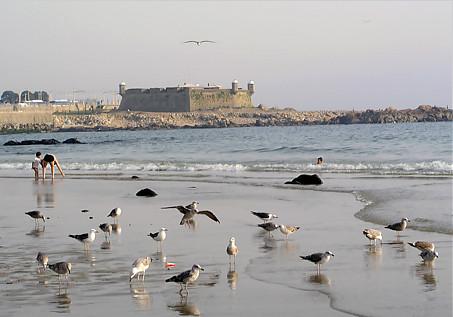 Esta praia fica junto ao Castelo do Queijo, antiga fortificação defensiva.